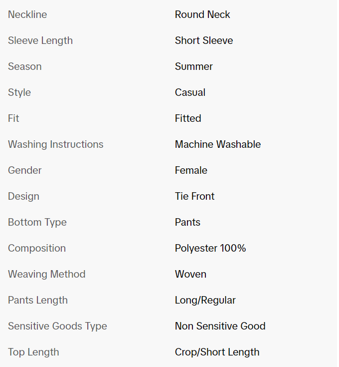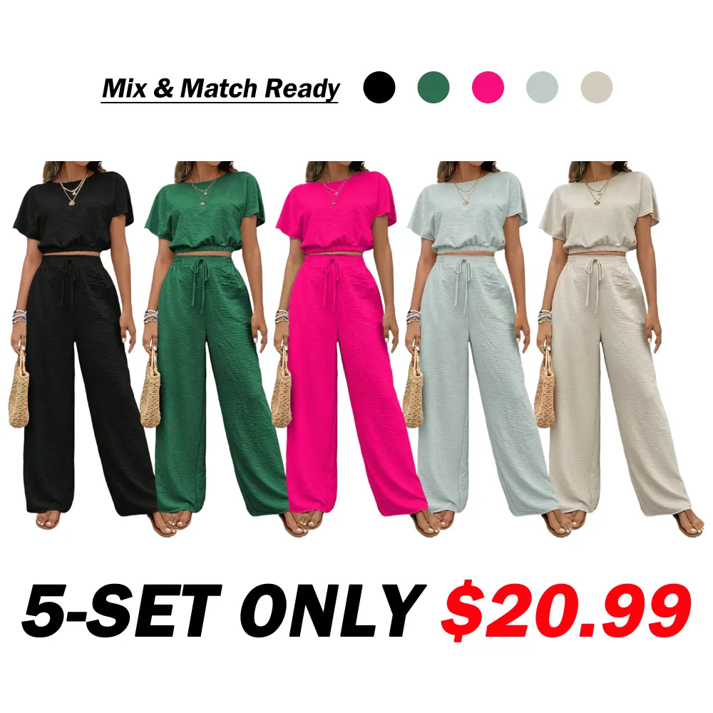 【Two-Piece Set】: Includes a round neck short sleeve top and wide leg pants, perfect for summer daily wear.