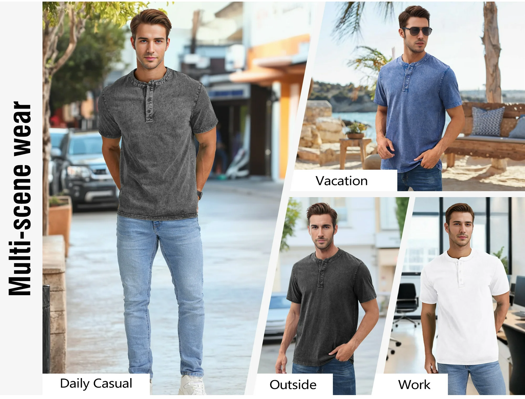 - This washed t-shirts shirts is comfortable versatile slim fit casual henley shirts, suit for daily wear, work, gardening, sports, holiday, beach etc.