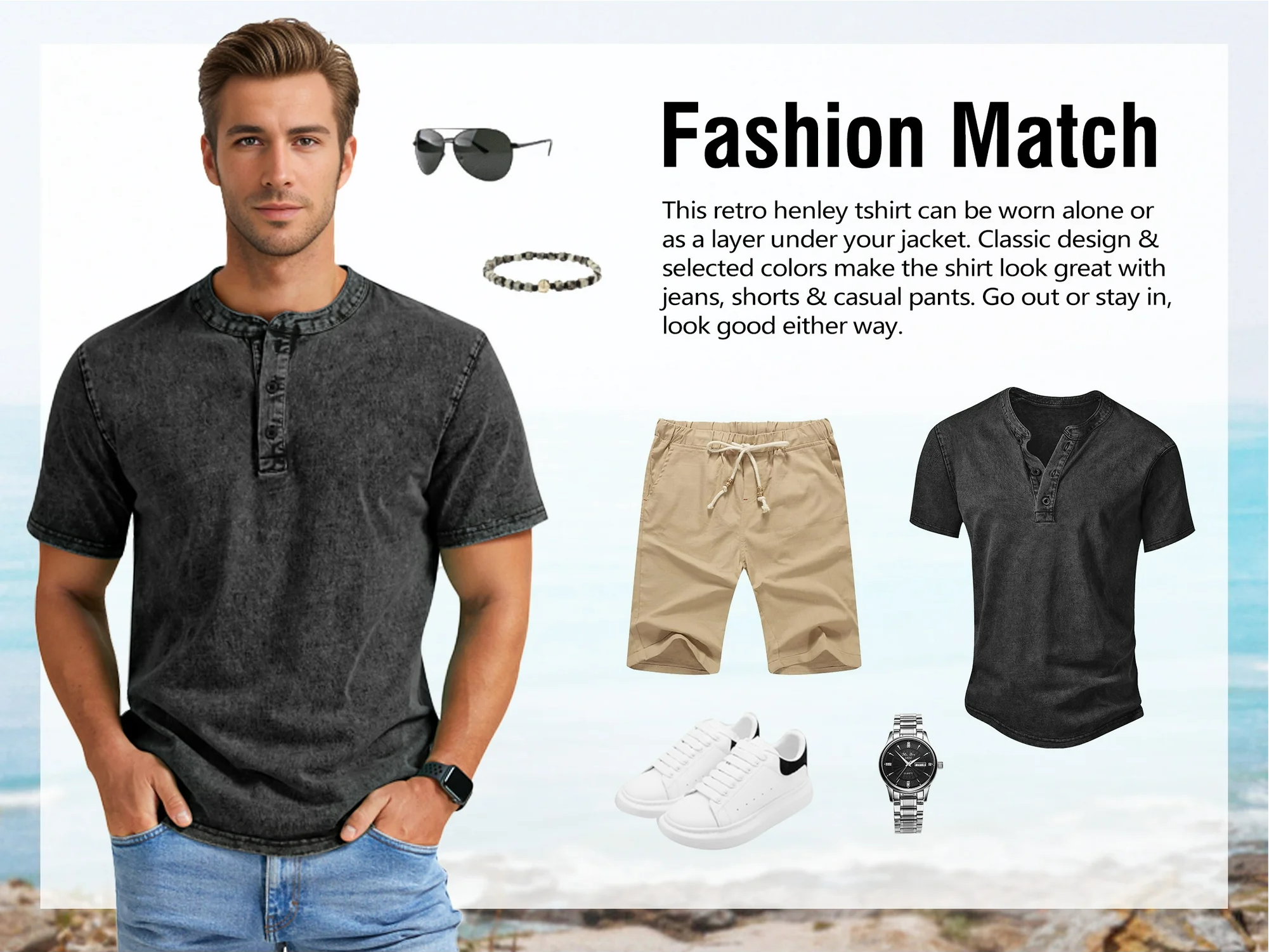 - This retro henley tshirt can be worn alone or as a layer under your jacket. Classic design & selected colors make the shirt look great with jeans, shorts & casual pants.
